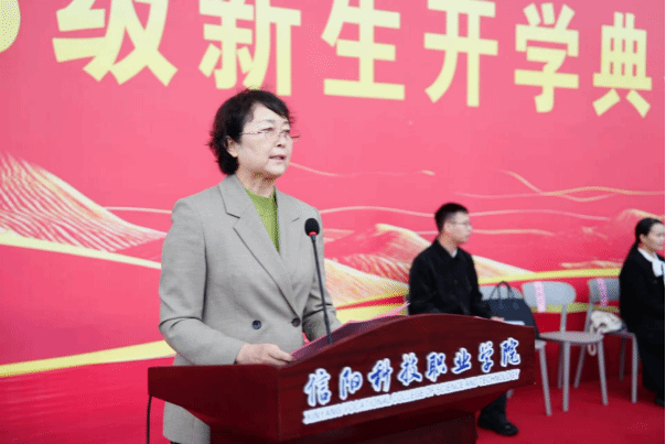 赵辉在讲话中指出,作为以工科为主的高等职业院校,信阳科技职业学院坚持高起点谋划、高标准建设,积极为同学们成长成才创造更好环境、提供更优条件。密切对接国家战略产业及河南“7+28+N”、信阳“6+11+N”产业布局,不断优化专业结构,形成了智能制造类、电子信息类、工业互联网类、智慧电商类专业协调发展的专业体系;坚持人才强校战略,引进一批职教专家、行业导师和青年才俊,初步建成一支专兼结合的“双师型”教师队伍,青年老师在2025年的河南省高等职业教育教学能力大赛中实现突破,4个参赛教师团队全部获奖;搭建以赛促学的成长平台,师生在各类技能竞赛中屡获佳绩,获得第六届全国高校计算机能力挑战赛、2024一带一路暨金砖国家技能发展与技术创新大赛等各类国家竞赛奖项6项,省级各项奖项20余项;强力推进产教融合、校企合作,高标准建设的5万平米的实训大楼全面建成并投入使用,先进的仪器设备、真实的企业场景,为实践教学提供了坚实的硬件支撑;与科大讯飞、亚龙智能、小米集团等行业头部企业合作建设了人工智能现代产业学院、智能制造产业学院和低空经济产业学院,推动专业共建、教材共编、双师共育,同时引入数据标注、AI语音录制真实生产型项目。与安钢集团、杭萧钢构等地方高新企业联合共建了80余个校内外实习实训基地;紧紧围绕立德树人根本任务,深入推进“三全育人”,构建了思想引领、学风建设、心理健康、资助帮扶、创新创业、文体育人“六位一体”的团学工作格局。